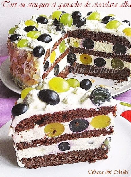 Tort cu struguri si ganache de ciocolata alba