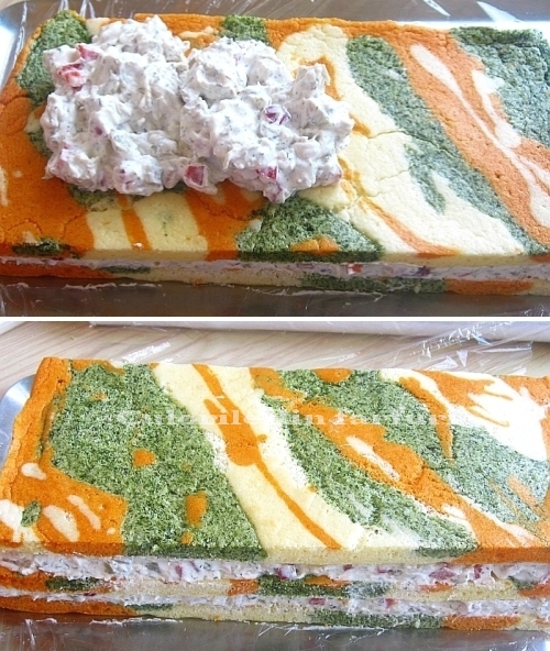 Modul de preparare este la fel ca la Rulada aperitiv tricolora asa ca imaginile cu pregatirea le gasiti AICI.