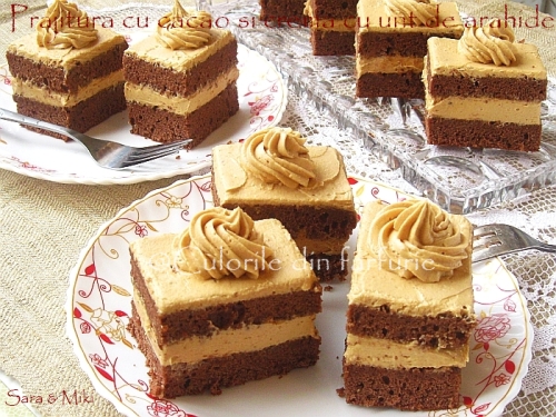 Nu stiu voi cum sunteti dar eu am descoperit ca-mi place untul de arahide. Primul desert a fost Tort marmorat cu crema de unt de arahide. Ne-a placut si am zis ca in acest week-end sa mai fac ceva dulce cu untul de arahide si astfel a rezultat aceasta prajitura, pe care v-o recomand sa o incercati.