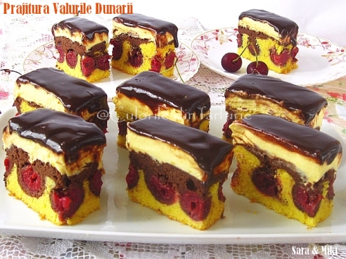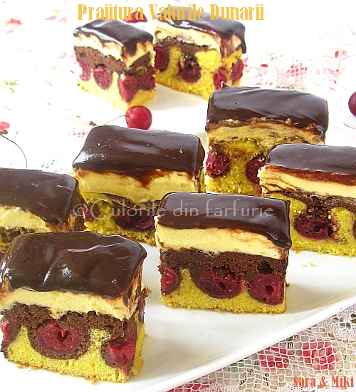 Prajitura Valurile Dunarii cea clasica si cunoscuta. Cu ceva timp in urma va prezentam o alta varianta a aceste prajituri – Prajitura Valurile Dunarii cu ananas. Acum fiind perioada cand avem visine proaspete am facut reteta originala. Este la fel de buna insa si cu visine din compot.