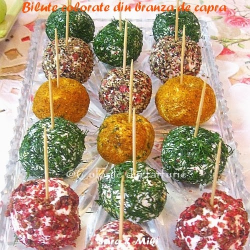Aceste bilute colorate din branza dau culoare platourilor de aperitive pentru mesele festive. Reteta este flexibila dupa gustul fiecaruia, dar ca bilutele sa aiba un aspect frumos trebuie sa folositi o branza mai tare.