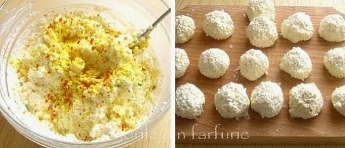 Se modeleaza din crema de branza bilute si se dau la rece 15-20 minute sa se intareasca.