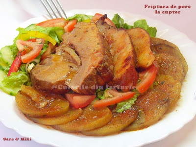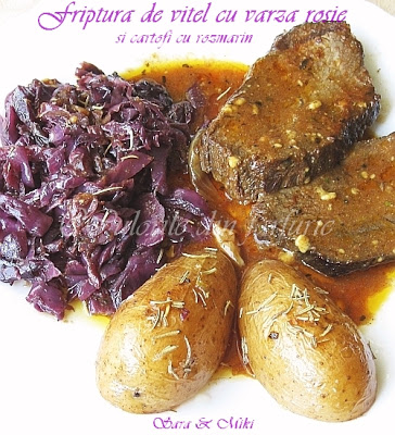 Friptura de vitel cu varza rosie si cartofi cu rozmarin