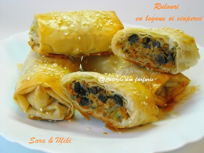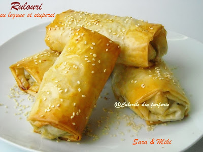 Rulourile acestea le-am vazut de curand la Euforia Cuisine. Compozitia umpluturi nu am retinut-o exact, dar asa improvizata, au iesit niste rulouri minunate.