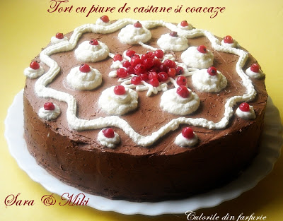@Petite Foury, ma bucur ca ti-am dat o idee. Despre siropul cu care insiropezi blaturile, sa fie simplu, din apa, zahar si eventual vanilie. Nu alte arome, ca sa nu estompeze aroma castanelor. Piureul de castane este la borcan sau sub forma de pachet. Eu am avut pachetul galben unguresc care are si rom in el. Daca iei la borcan mai adaugi tu putin rom. Gustul e un deliciu. O zi frumoasa.