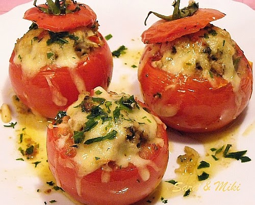 Le-am asezat intr-o yena data cu margarina, si am adaugat vin. Peste rosii am razalit cascaval. Am dat la cuptor pentru 15 minute.