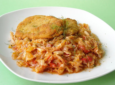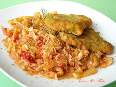 Se mai lasa la fiert pana se absoarbe lichidul. Se potriveste de sare daca e nevoie si se presara marar. Paneuri calde, alaturi de varza dulce, e un meniu usor si gustos. Pofta buna!