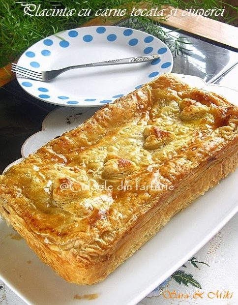 Placinta cu carne tocata si ciuperci este una din preferatele familiei. V-am prezentat pana acum o gama de Placinte, dar aceasta cu carne mi-a scapat. Fie ca este cu umplutura de carne sau carne in combinatie cu ciuperci, nu cred ca poate refuza cineva. Asa ca va tentez si pe voi sa o pregatiti pentru cei dragi.