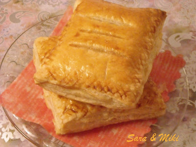 Aluatul se intinde si se taie in pătrate (sau drptumghiuri) cu latura de 6-8 cm. Se pune in centru din compozitie, se umezeste patratul pe margini si se acopera cu alt patrat.