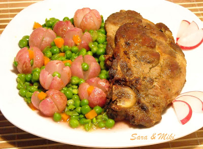 Este o combinatia din ridichi si mazare, de la cutie sau comgelata. Ridichiile se cresteaza in varfuri si se distuie in ulei de masline si un cub de unt.
