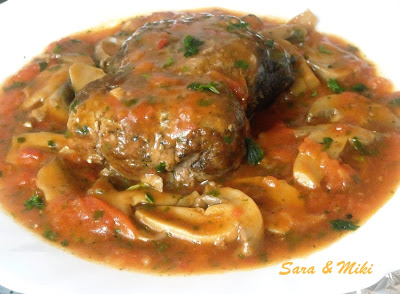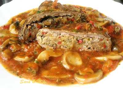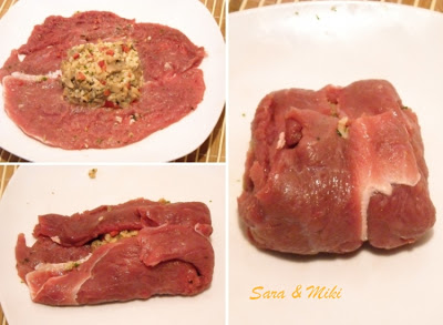 Amestecul de ciupercile taiate marunt si ceapa, se aseaza în centru feliei de carne si se inchide cu marginile feliei de carne, astfel încat sa acopere bine umplutura.