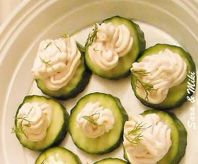 Rondele de castraveti cu pasta de icre este un aperitiv rapid. Cu baza de pâine, biscuiti, turte …sau ca in cazul acesta, castraveti taiati feli potrivit de groase, se pot improviza gustari usoare si rapide.