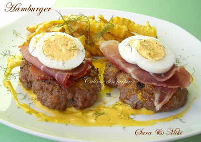 O alta reteta pregatita de sotul meu. El a transformat clasicul sandwich Hamburger, intr-un fel principat elegant, pentru o masa de duminica. Sper sa va placa si voua ideea. Eu am intervenit putin, doar la decorul din farfurie.
