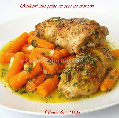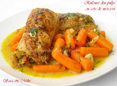 Cu ajutorul unui cutit dezosati pulpele superioare de pe os. Pentru umpluturam se soteaza ceapa in ulei fierbinte. Se adauga si morcovul feliat pe lung.