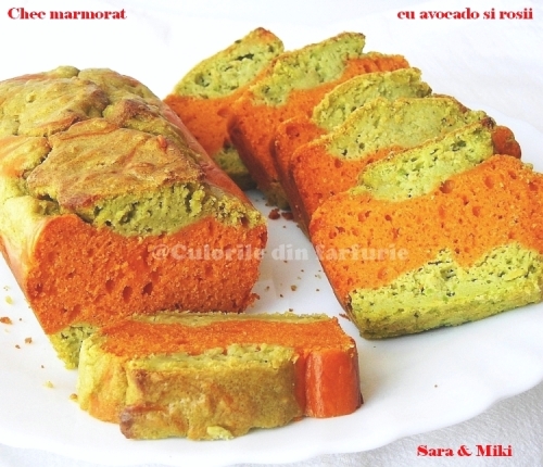 Se pregateste o forma de chec cu hartie pergament. Se toarnă un strat de aluat cu pasta de tomate la partea de jos, apoi se acopera cu al doilea strat cu avocado. Se poate amesteca usor cu un cutit pentru un efect marmorat. Se coace timp de 40-45 de minute la 180°C . Se serveste rece.
