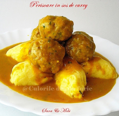 Uleiul ramas de la perisoare, se strecoara printr-un tifon curat, intr-o alta tigaie. Astfel, in uleiul curat, se adauga faina si praful curry, se toarna vinul si supa de legume, dupa caz cat sa rezulte un sos nu foarte gros. Daca nu aveti o supa in frigider, faceti dintr-un cub knorr.