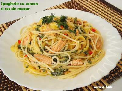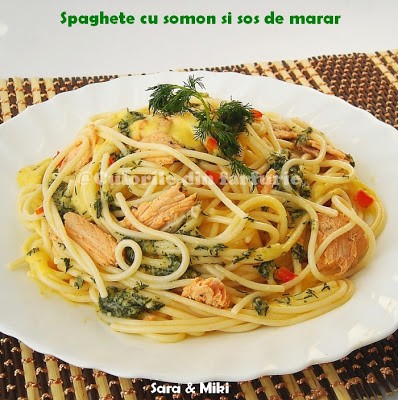Spaghete cu somon si sos de marar