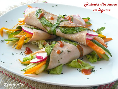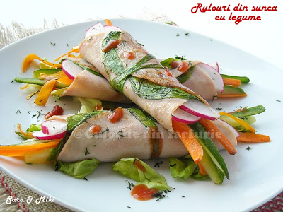 Rulouri din sunca cu legume un fel de salata din legume si sunca putin aranjate. Daca vrem ceva mai apetisant, fie doar pentru noi sau daca avem nevoie de un antreu la o masa cu prieteni, inventam putin…. si iata o idee usoara si rapida.
