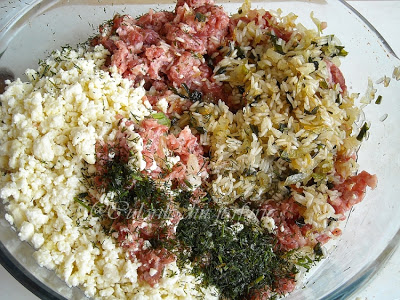 Dupa ce s-a racit, se adauga peste carnea tocata, impreuna cu urda, mararul tocat marunt, boiaua de ardei, menta, cimbru dupa gust, sarea si piperul.