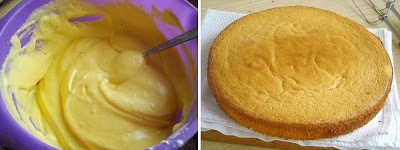 Cu un mixer se bat albusurile cu un praf de sare pana se obtine o spuma tare. Se adauga lingurile de zahar, galbenusurile, lingura de ulei si cea de apa rece.
