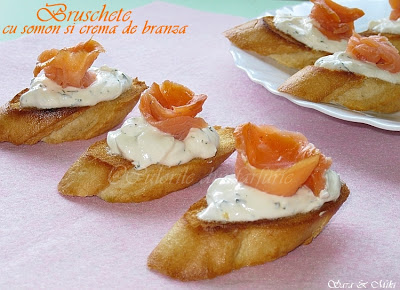 Bruschete cu somon si crema de branza este nu doar gustoasa dar si aspectuoasa, excelenta pentru orice petrecere neasteptata sau planificata. Se face foarte rapid, trebuie doar sa le ai cumparate in frigider.
