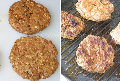 Din amestecul rezultat se fac chiftele rotunde, plate si groase de cca 1 cm, care se prajesc de preferinta pe gratar, doar uns cu o pensula cu ulei. Se intoarce doar cand jumatatea de burgar dinspre foc si-a schimbat culoarea. La fel lasam sa se prajeasca si pe cealalta parte la foc potrivit.