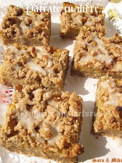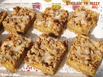 Patrate cu mere este asemanatoare cu o reteta postata mai demult de mine, Patrate cu curmale, dupa Ana Olson. Merele sunt preferate de multi in prajituri deci sper sa va tenteze si sa o incercati.