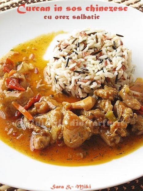 Se serveste cu sosul chinezesc si bucatile de curcan. Pofta buna!