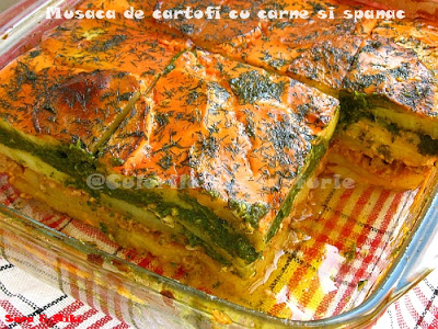 Urmeaza stratul de spanac si se acopera cu ultimul strat de cartofi.