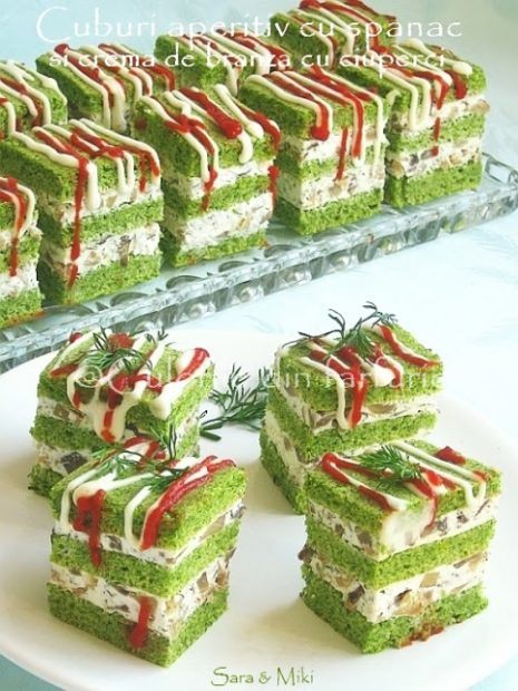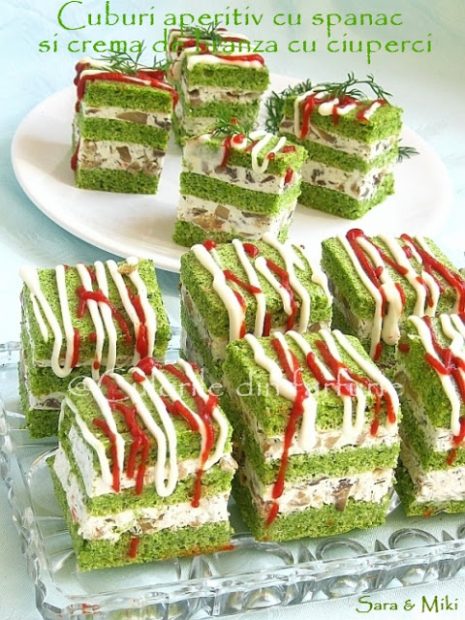 Aceste „Cuburi aperitiv cu spanac si crema de branza cu ciuperci” sunt aperitivul gen „mise en bouche”, ideal pentru a deschide o masa festiva.