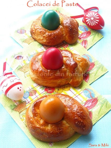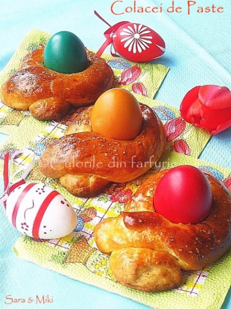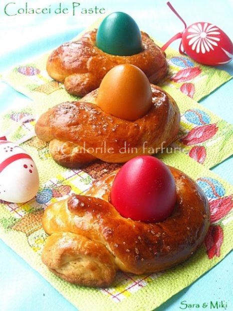 Hristos a inviat! Astazi fiind Sfantele sarbatori de Pasti pentru catolici, uram Sarbatori fericite tuturor prietenilor care azi au sarbatorit Invierea lui Iisus! Ca-n toate familiile mixte si noi anul acesta vom avea doua sarbatori de Pasti. Asa ca va invitam sa gustati acesti Colacei de Pasti.