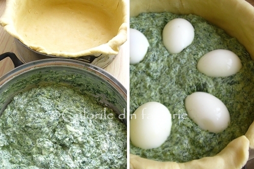 Am facut-o ieri, sambata, pentru Paste. Am adapatat-o putin: am facut un aluat mai dietetic fara unt, cu faina integrala bio, am pus doar branza sarata, iar pentru ca nu am avut suficient spanac(am o forma mai mare de 28) am pus sus un strat de dovlecei caliti cu branza. E foarte buna, o sa o mai fac!multumesc pt idee!