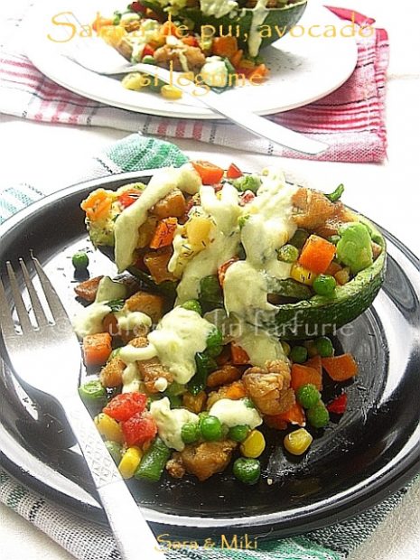 Ideea acestei salate a aparut cand am facut Strudel cu pui si legume si imi ramasesera legume sotate cu carne. Aveam in frigider si un avocado si am realizat aceasta salata.