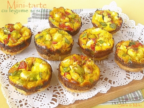 Ideea este ca legumele pe care le folositi sa fie cat mai colorate, in plus adaugati bucati de bacon, afumatura, chorizzo… ce aveti prin frigider. Si pentru a fi mai comod de servit le facem fie in forne mici de tarte, fie in tava de muffins.