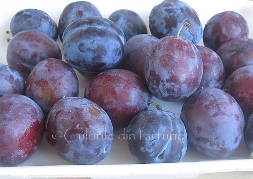 Ingredientul principal sunt aceste fructe… prunele, pe care le spalam le taiem pe jumatate si apoi in alte feli mai mici.