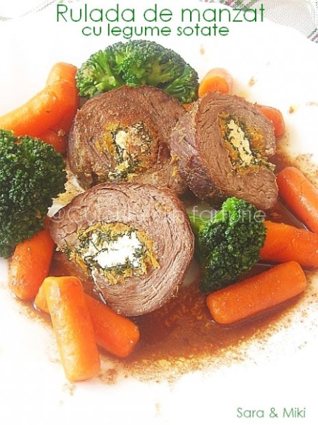 Se poate folosi ce garnitura doriti, dar eu am mers pe legume sotate si cum in rulada am ras si morcov, am cautat ca si-n garnitura sa se regaseasca morcovi.