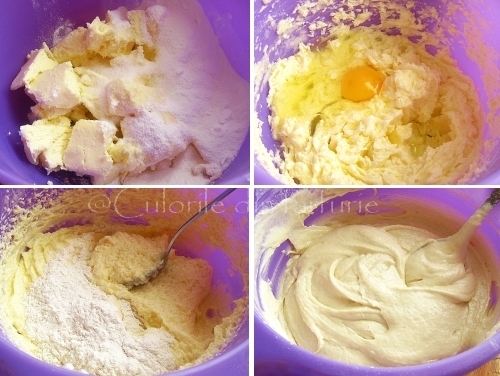 Se bate spuma cu mixerul untul, zaharul, zaharul vanilinat, laptele şi ouale. Se adaugă faina amestecata cu praful de copt.