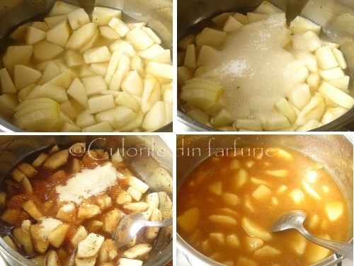 Se curata perele, se scot samburii si se taie în bucatele potrivite ca marime.