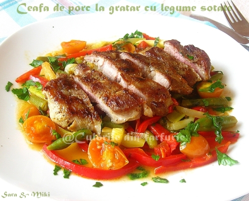 Combinatia de porc la gratar cu soteul de legume este un fel principal bun si consistent dar si foarte sanatos. Pofta buna!