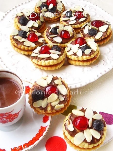 Biscuiti cu gem, cirese glasate si fulgi de migdale