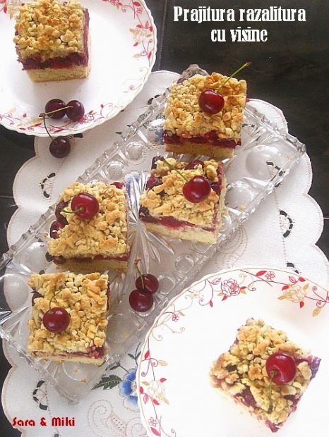 Prajitura razalitura cu visine din gama prajiturilor cu fructe, am facut-o pentru acest sfarsit de saptamana. Puteti folosii visine, cirese sau orice alt fruct, ca in reteta care v-am prezentat-o deja: Prajitura cu piersici si nuci. Este o prajitura usor de pregatit si foarte buna, ca orice desert cu fructe. Delectati-va!