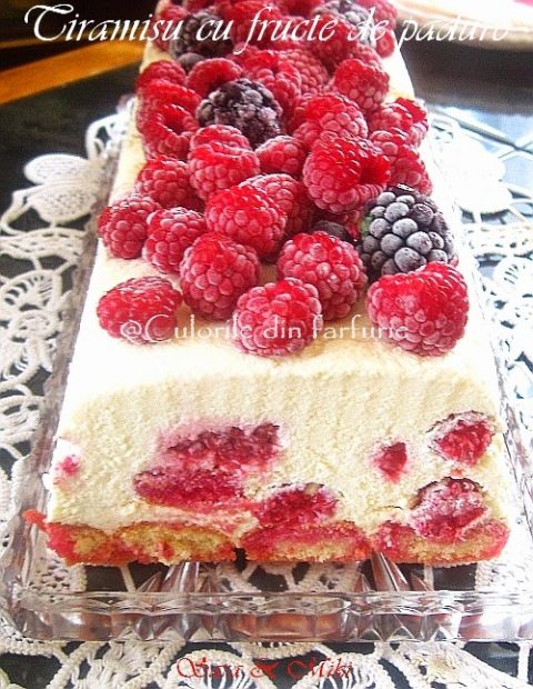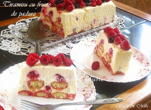 Tiramisu cu fructe de padure a fost rasfatul acestui sfarsit de saptamana. Zmeura este preferata mea din gama fructelor de padure si pentru mine deserturile cu zmeura, fie ca e proaspata sau congelata, sunt un regal. Sper sa va tentez si sa incercati reteta cat mai avem zmeura proaspata.