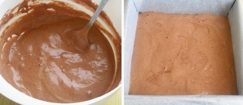 Se face un blat patrat din 3 oua. Se separa ouale. Albusurile se bat tare cu un mixer. Se adauga treptat zaharul, lingura de apa rece si apoi galbenusurile pe rand. Se opreste mixerul si se incorporeaza lingura de cacao si faina cernuta. Se tapeteaza cu hartie de copt o forma de 21 x 21 cm. Se adauga aluatul si se da la cuptor timp de 25-30 de minute la 175 – 180 °C. Cand este gata se scoate pe un gratar si se lasa sa se raceasca.