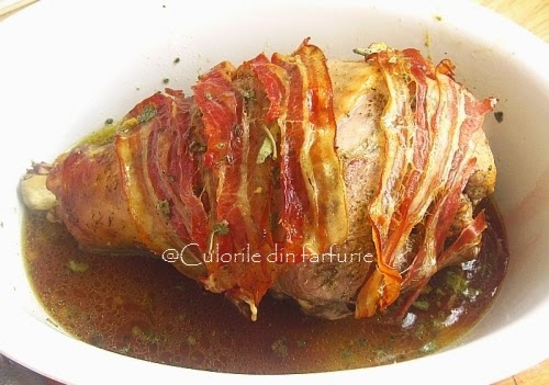 Se lasa sa se odihneasca acoperita cu o folie de aluminiu, dar nu ermetic. Se feliaza si se serveste langa o garnitura. Noi am servit-o alaturi de un Sote de varza de Bruxelles, iar reteta o gasiti AICI. Pofta buna!