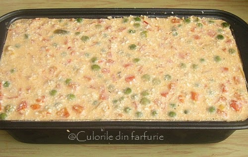 Peste branza ramasa se adauga legumele fierte si racite si supa retinuta. Se termina aspicul cu acest amestec.