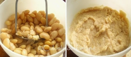 Cand a fiert fasolea se strecoara si calda se zdrobeste. Se bate apoi cu mixerul si se incorporeaza ulei cate putin ca la maioneza. Cantitatea de ulei este in functie de cat inghite fasolea. Se condimenteaza dupa gust.