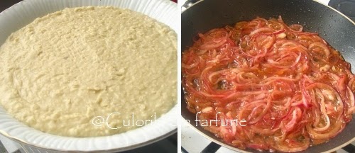 Se aseaza intr-un castron si se pregateste ceapa caramelizata. Ceapa rosie se taie julien si se distuie intr-o tigaie in care am pus ulei.