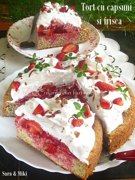 Mod de preparare Tort cu capsuni si frisca: