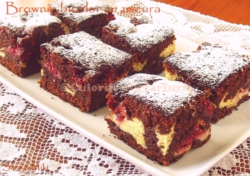 Brownie cu fructe am facut, de aceea acum am ales varianta cu bucati de ciocolata alba si nuci.
