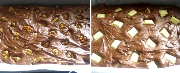 Mod de preparare Brownie cu bucati de ciocolata alba si nuci: